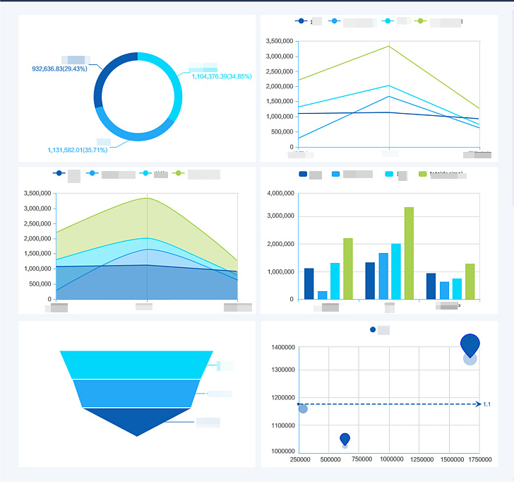 生成獨(dú)立一張圖界面,將所有的數(shù)據(jù)已折線、餅圖、柱狀圖、區(qū)域圖、數(shù)字等進(jìn)行可視化展示。