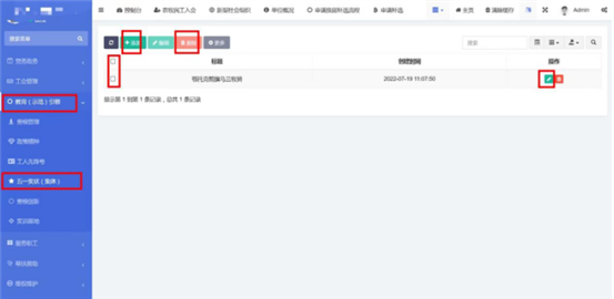 五一獎(jiǎng)狀(集體)中查看已錄入的五一獎(jiǎng)狀(集體)信息。點(diǎn)擊添加按鈕,輸入標(biāo)題和內(nèi)容。內(nèi)容編輯器中支持文字排版、上傳圖片、插入視頻鏈接、插入表格、給文字加超鏈接等功能。點(diǎn)擊確定按鈕保存內(nèi)容,發(fā)布到前端。點(diǎn)擊編輯按鈕,編輯之前發(fā)布的內(nèi)容后點(diǎn)擊確定按鈕保存內(nèi)容,發(fā)布到前端。支持批量刪除,勾選想要?jiǎng)h除的信息,點(diǎn)擊上方按鈕中的刪除按鈕。